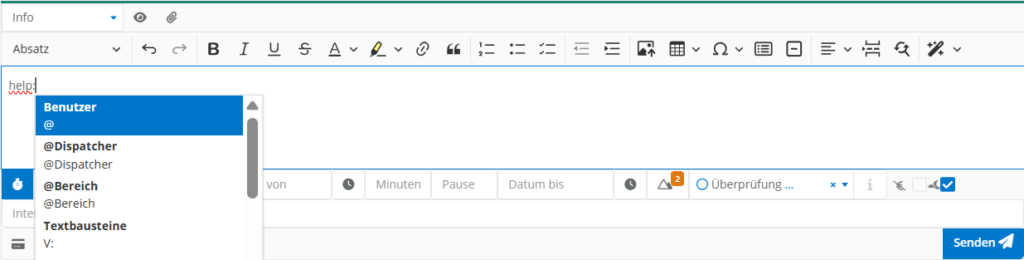 Bei internen Tickets oder Positionen kann keine E-Mail über den Smart-Text versandt werden.