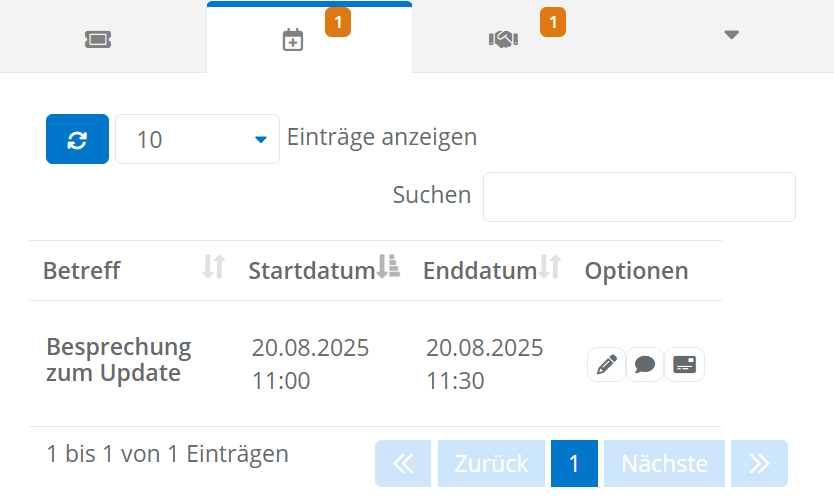 Um einen Termin aus einem Ticket zu versenden, klicken Sie .