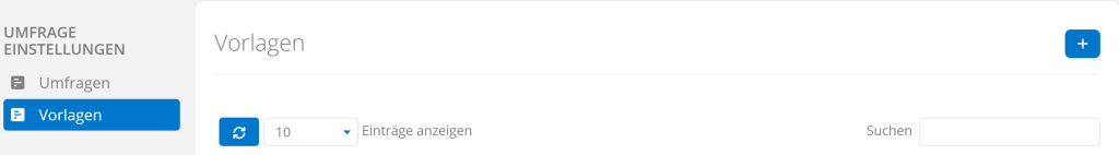 Um eine Umfragevorlage zu erstellen, navigieren Sie zuallererst auf Umfragen. Im Reiter „Vorlagen“ können Sie daraufhin mit einem Klick auf eine neue Umfragenvorlage erstellen.